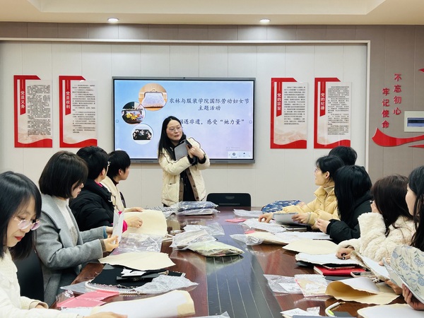 春风有信,花开有期。3月6日下午,农林与服装学院开展“巾帼遇非遗,感受‘她力量’”非遗传承口金包制作DIY活动,以别样的形式共同庆祝“三八”国际劳动妇女节,学院服装专业教师带领师生们在一针一线中共同感受节日氛围。