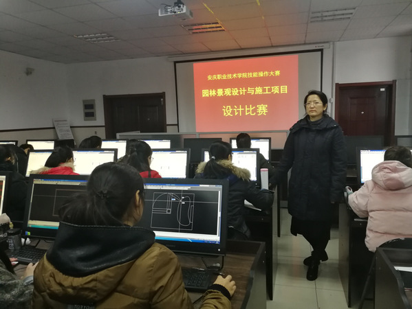安庆职业学院“园林景观设计与施工”项目技能大赛项目于2018年12月16日圆满结束。来自2017级园林技术专业的学生16名学生参加了本次比赛;最终,2017级园林技术班胡梦姣、胡秀侠、马赞、邱德良4名同学以143分获得本次比赛的团体第一名。