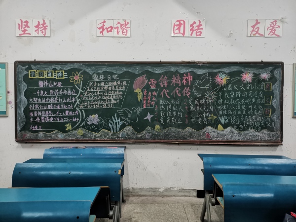 在主题板报活动中,各班积极参与,精心设计,充分利用校园文化黑板报这块宣传阵地,展现雷锋的形象,歌颂雷锋“全心全意为人民服务”的高尚品质,展示了同学们对雷锋精神的感悟和理解。