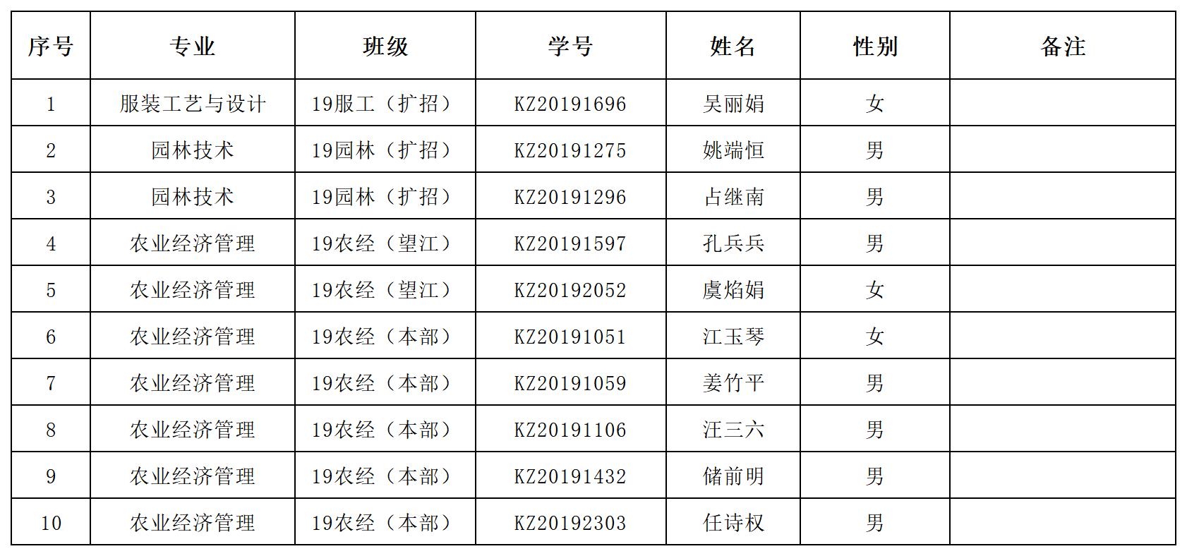 农林与服装学院2019级社会扩招人员第二轮毕业资格合格名单