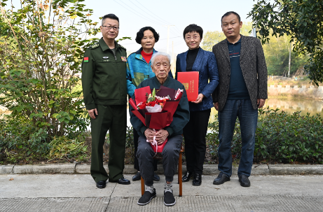 11月12日上午,一场意义非凡又简洁真诚的革命文物捐赠仪式在beat365离休干部戴平同志家中举行,校党委委员、组织部部长高润霞前往见证捐赠过程,迎江区委常委、区人武部政委倪磊接受戴老向安徽革命军事馆无偿捐赠的革命文物——一张保存了67年的工作合影,这张照片记录了他在西藏工委工作期间的珍贵瞬间。倪磊对戴老无私奉献的精神表达了敬意,并为他颁发了捐赠证书。